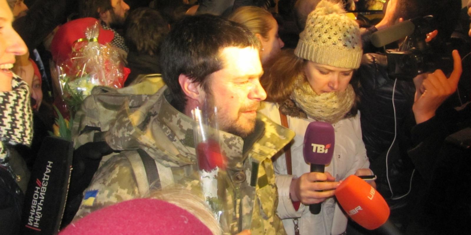19 лютого о 22.56 близько тисячі киян зустрічали потяг "Костянтинівка-Київ" на центральному залізничному вокзалі. Ним приїхала перша партія військових із міста Дебальцеве на Донеччині.