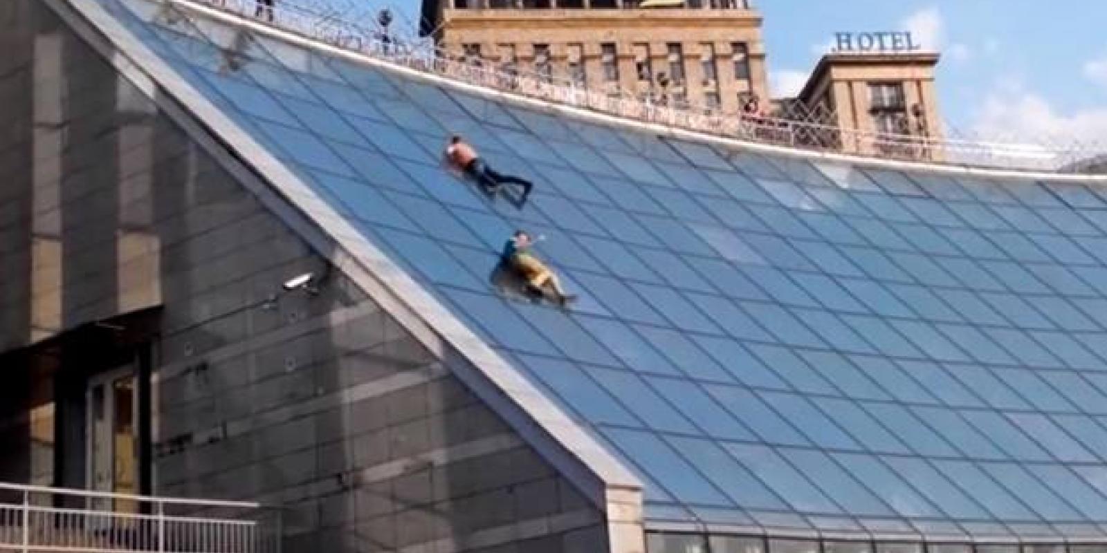 У Києві двоє хлопців вирішили скотитися зі скляної стіни торгово-розважального центру "Глобус" на Майдані Незалежності. Після екстремальної їзди одному з них знадобилася госпіталізація.