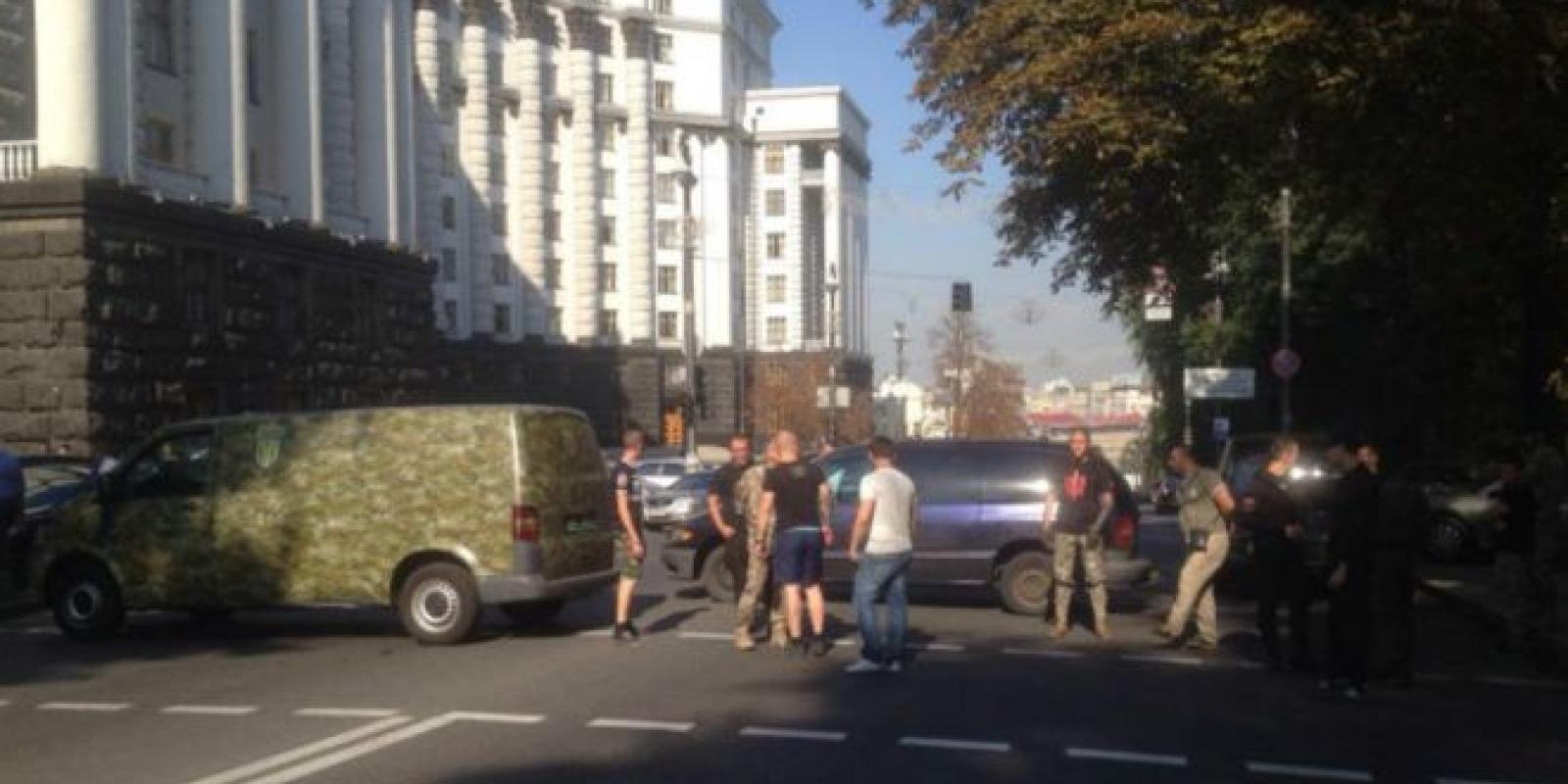31 серпня вулицю Грушевського заблокували автомобілі незадоволених мітингувальників, повідомляє кореспондент ВВС Україна з місця подій.