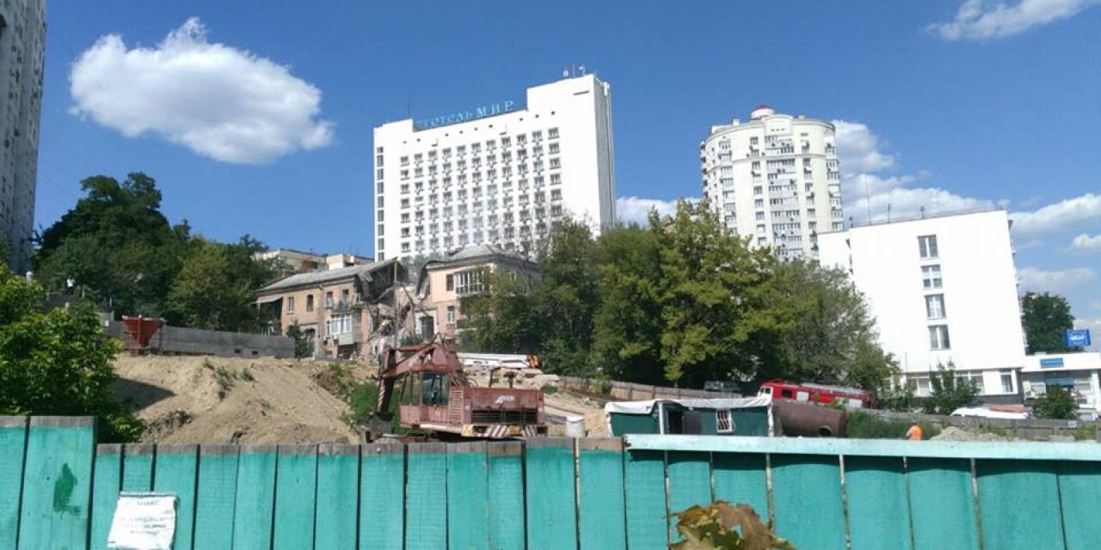 Забудовник (на фото ви бачите будівельний майданчик впритул до підірваного будинку) дуже активно хотів відселити всіх мешканців будинку.