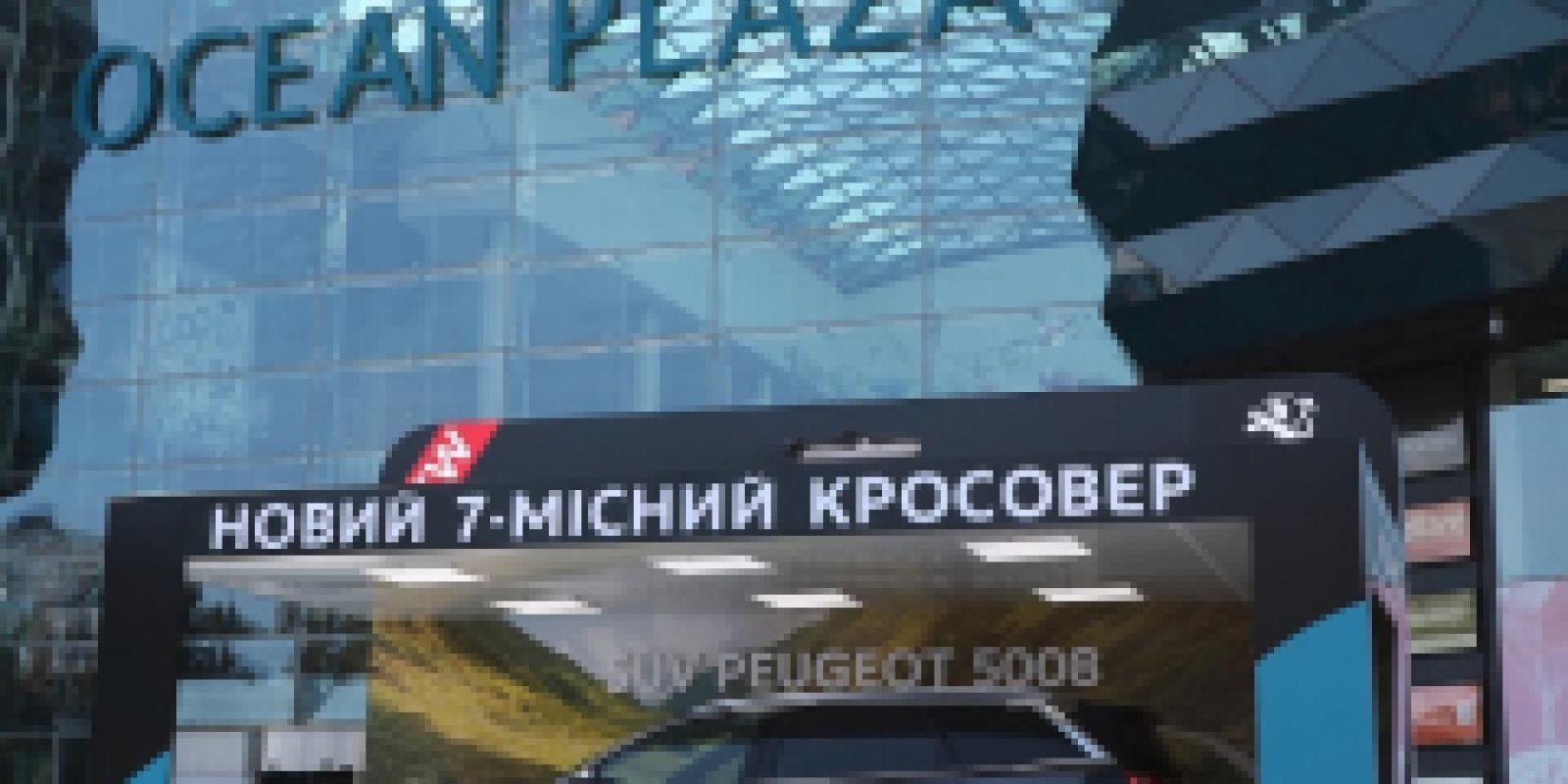 Незвичайні місця в Києві – це не новинка. Проте експозиція авто – це вже щось цікаве. Новенький 7-місний SUV PEUGEOT 5008 порадує кожного відвідувача ТРЦ Ocean Plaza. Біля ТРЦ стоїть маленька моделька авто, запакована в коробку, проте в масштабі вона становить 1:1 з новеньким SUV PEUGEOT.