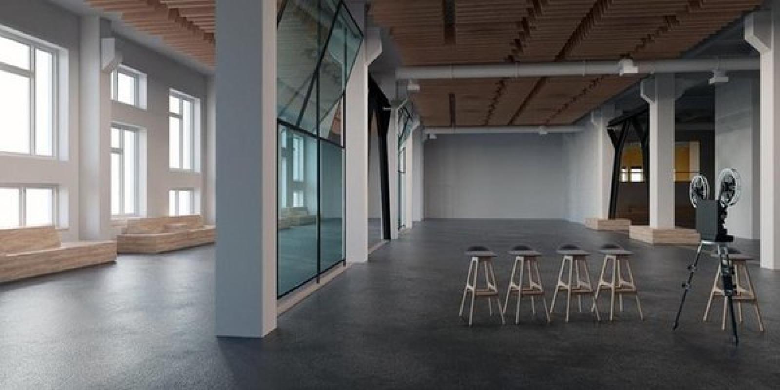 Наконец загроможден первый этаж помещения стал публичным пространством. Здесь работает магазин «Довженко. Книги. Кофе », ресторан« Эфир », ресепшн, а также есть возможность проводить кинопоказы, театральные и музыкальные выступления.