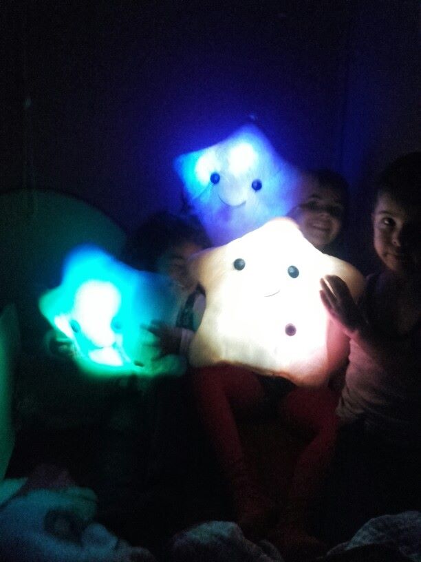 Це подарунок 2 в 1. По-перше, це подушка, на яку так і хочеться прилягти. З нею приємно засинати, тримаючи в руках. По-друге, це нічник. Якщо дитина погано засинає - увімкніть подушку і м’яке світло наповнить кімнату. Під поступову зміну кольорів можна розповідати казки та налаштовувати дитину на сон. Подушка - чудовий товариш для ігор! Діти люблять бавитися. А з такою кольоровою зірочкою, що миготить вогниками вони обов’язково подружаться! Діти - великі винахідники. Вони зможуть придумати безліч нових ігор з такою подушкою.