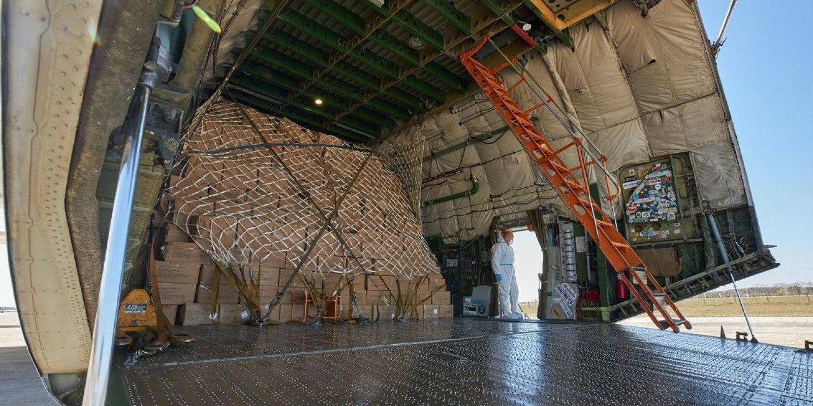 14 квітня літак доставив 100 тон медикаментів з Китаю до Польщі (тоді обсяг вантажу був 1000 кубічних метрів проти 1200, які Ан-225 доставив в Україну).